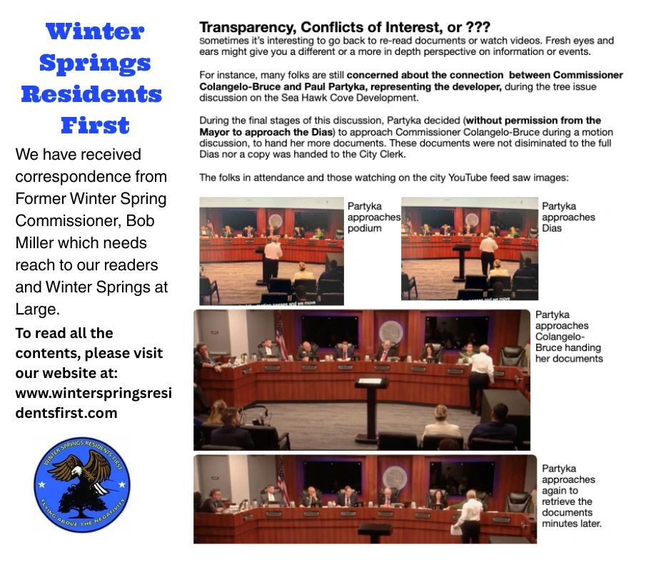 Winter Springs Former Commissioner Bob Miller Speaks Out